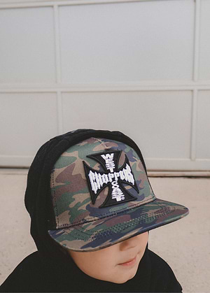 The LT x West Coast Choppers Trucker Hat brings iconic chopper culture to kid-size proportions with a bold 3D embroidered West Coast Choppers cross logo over our best-selling camo print. Built on a structured...