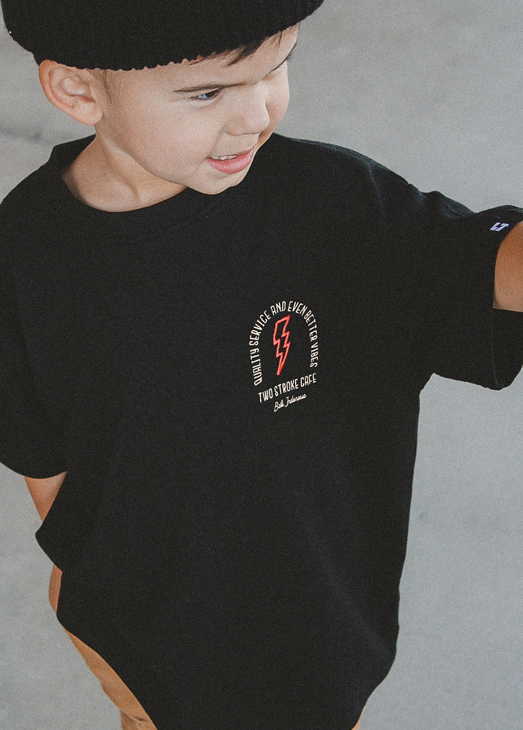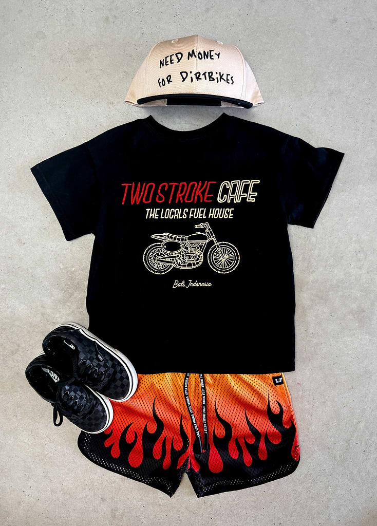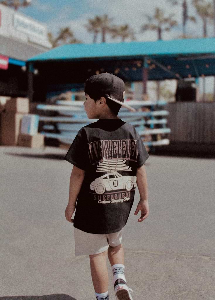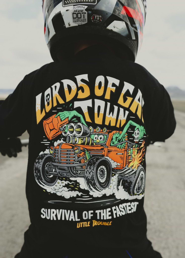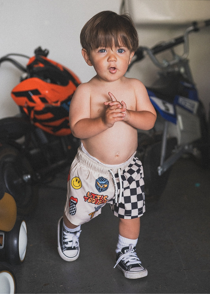 Little Trouble was inspired by my sons Cash & Axle and kids like them. We’re celebrating kids for being kids. For being carefree and wide-eyed. For running into the freezing cold ocean (and loving it). For fearlessly riding their mini dirt bikes. For falling off their skateboards and rocking a purple band-aid. For being authentically themselves. For being kind. For being world changers.