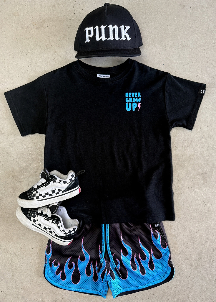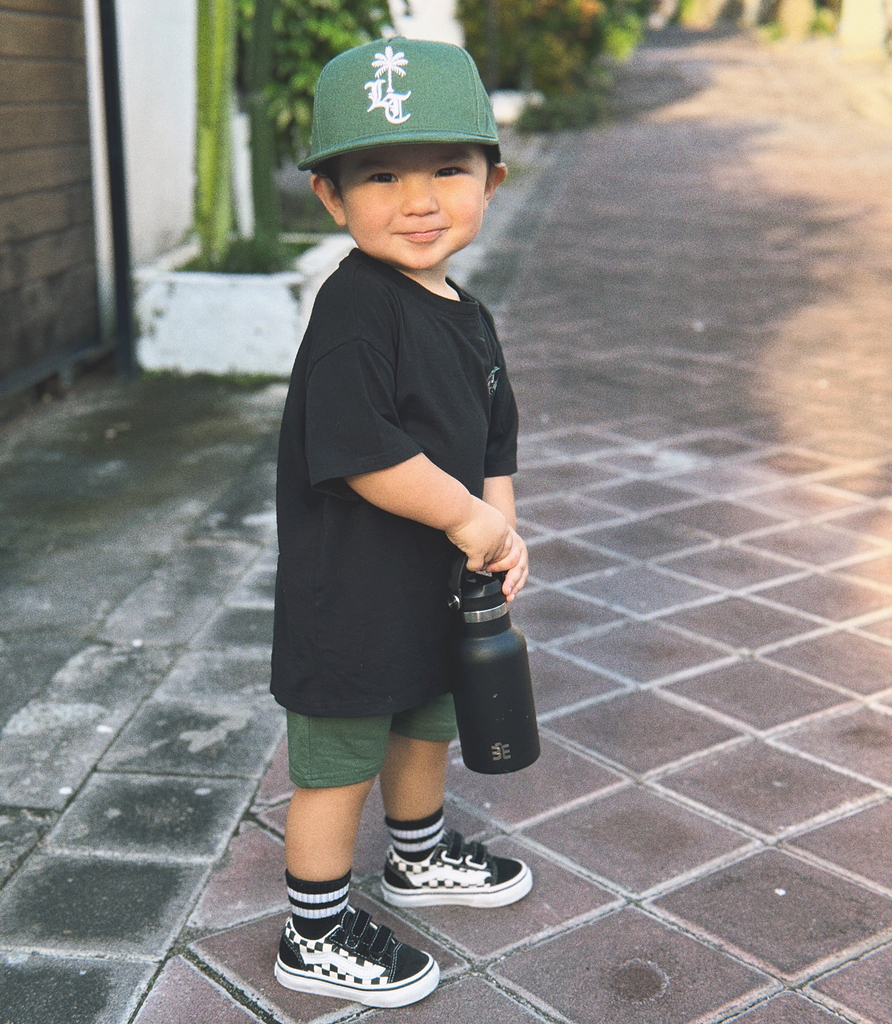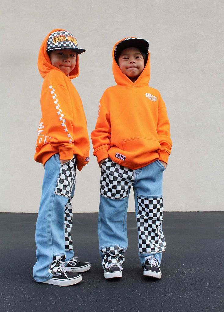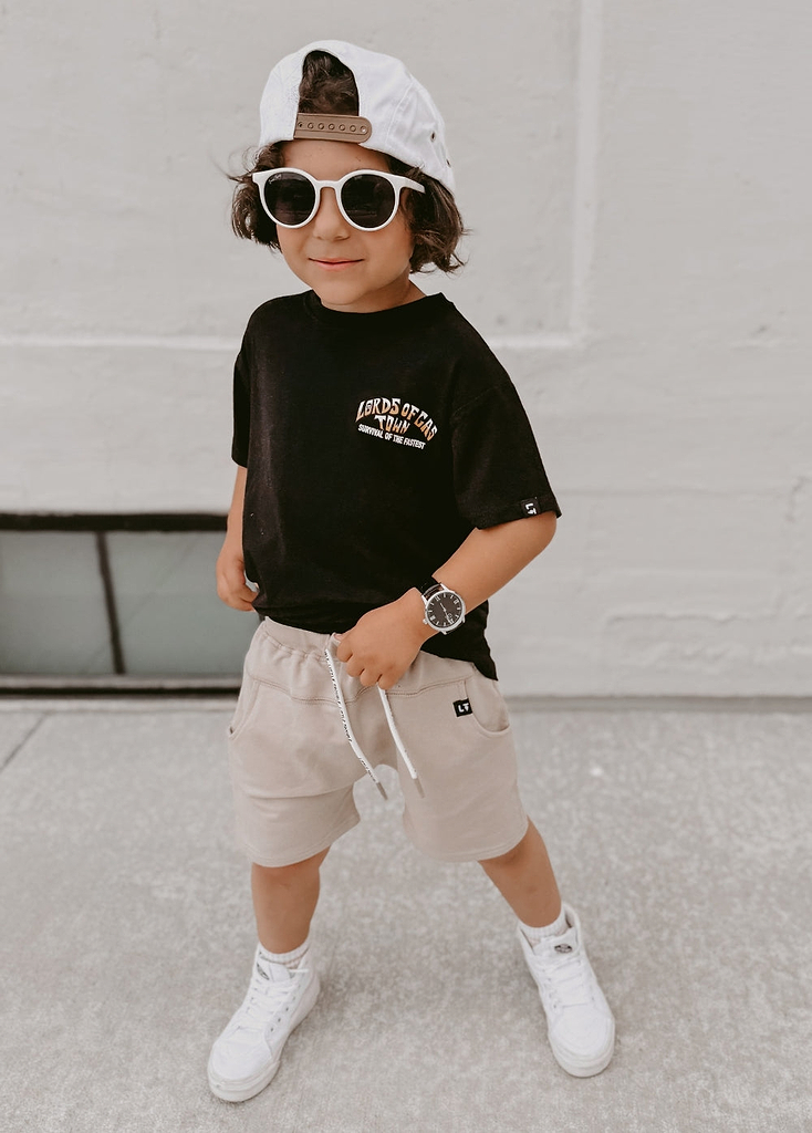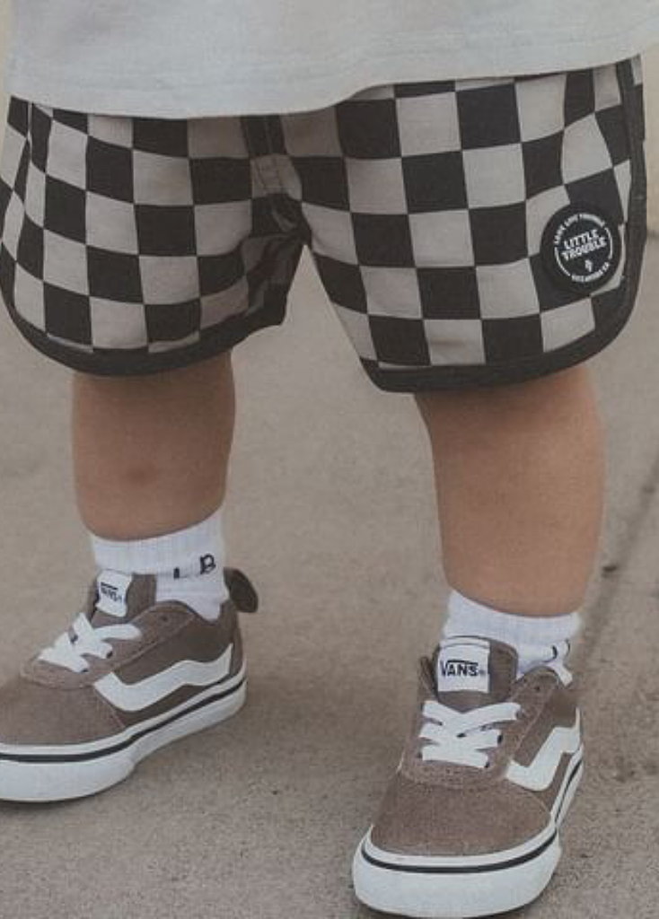 Little Trouble was inspired by my sons Cash & Axle and kids like them. We’re celebrating kids for being kids. For being carefree and wide-eyed. For running into the freezing cold ocean (and loving it). For fearlessly riding their mini dirt bikes. For falling off their skateboards and rocking a purple band-aid. For being authentically themselves. For being kind. For being world changers.