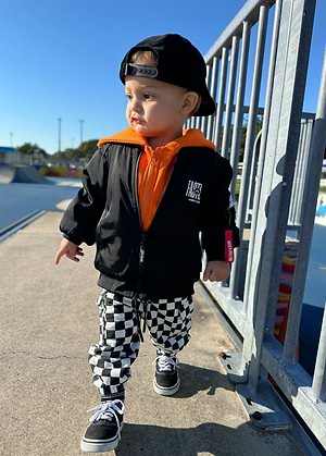 Built for the kids who hit the ground running.The Speed Junkie Long Sleeve, now in gold brings full on energy with bold black text outlined in red, plus flame graphics racing up both sleeves. It’s loud, iconic, and unapologetically Little Trouble.