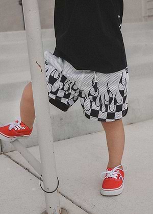 Green...GREEEEEEEN! Flames are our current obsession and THESE my favorite shorts I have ever made. These ultra breathable mesh basketball shorts are perfectly paired with every Little Trouble shirt, hoodie and long sleeve. And per usual, the custom details are off the charts.