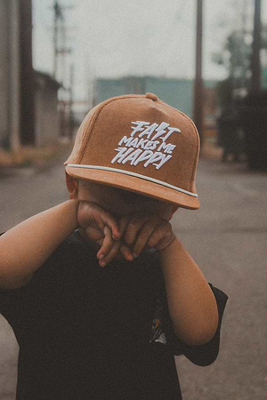 Hats that make you happy, that’s our thing. The HAPPY OCTANE ONLY trucker snapback speaks to my love of color (orange in particular) and the vibe of my wild kids who like to go really fast. With bold contrast embroidery across the front, custom clip label and tape and a checkered hit to tie it all together, it’s as detail forward as everything else we make. Lightweight mesh back keeps things breezy, and the adjustable snapback grows with your little one.